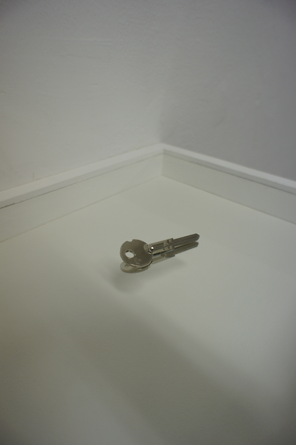 Aymeric Ebrard, Ur (La clé), 2009, duas chaves numa vitrina (latão, vidor e madeira) 5x43x33 cm, cortesia do artista © Aymeric Ebrard