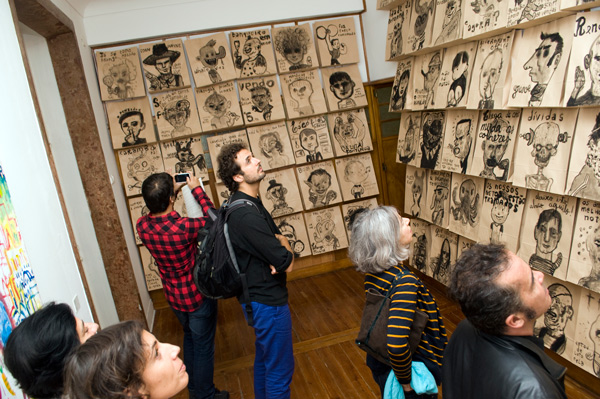 Rodolfo Bispo (1981) cria “Museum Shop” (2012) e “Este ano vamos todos ser p*tas” (2012), especificamente para esta mostra. Fugindo da cor, surpreende com um trabalho a tinta da china, mas mantém o sentido de humor que o caracteriza. Bispo quer deixar na sua “time capsule” um testemunho, a sua perspetiva da situação presente dando voz às suas imagens com frases como “a moody’s é um Adamastor”, “ainda vamos todos a tempo de fazer BIRRA pelos nossos direitos” ou “acorda Pinóquio, Portugal nunca vai ser um país de verdade”.