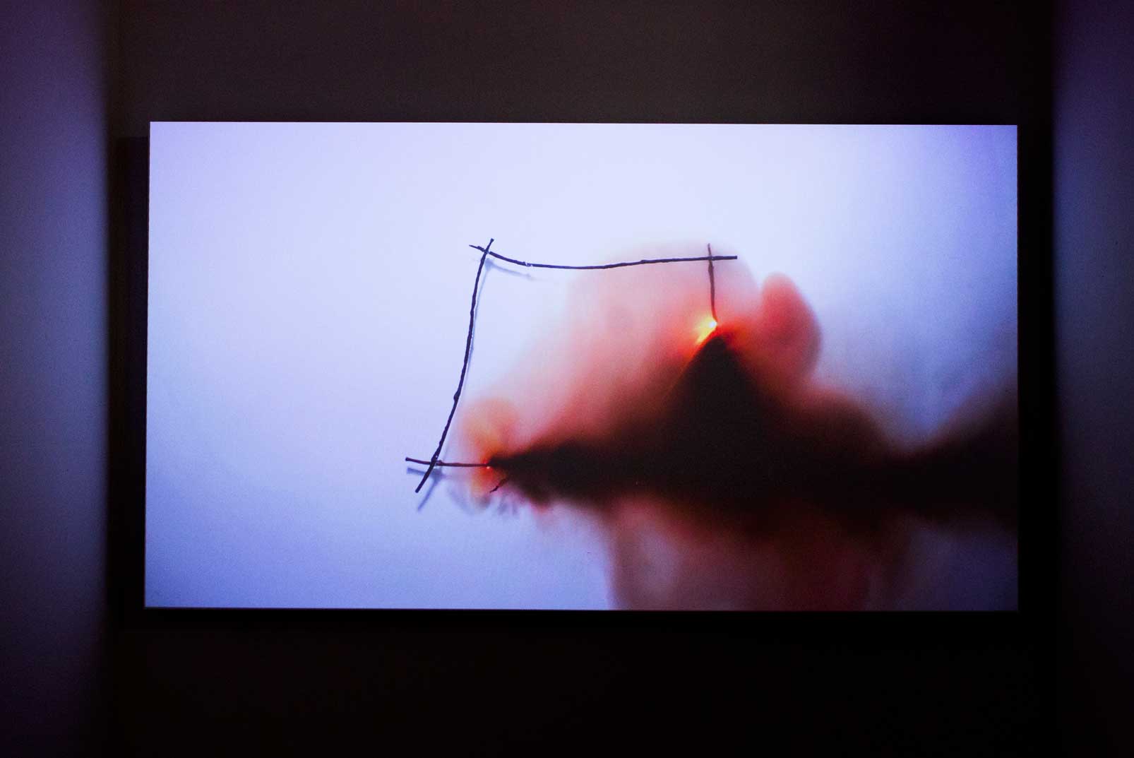 As mechas de fogos de artifício são ali dispostas de modo a produzir diferentes desenhos, que são filmados durante o tempo da sua combustão. A forma de filmar e a particularidade da montagem em loop permitem que estes acontecimentos fugazes sejam assim repetidos, como se o efémero e o explosivo operassem aqui a sua revolução permanente. Não existe de todo ou existe pouca exuberância pirotécnica no trabalho de Elisa Pône, que regista de bom grado, com paciência científica, os fenómenos de combustão, a efemeridade da incandescência e joga com o encantamento e também com o desencanto, captando assim um real explosivo na sua pura fugacidade.