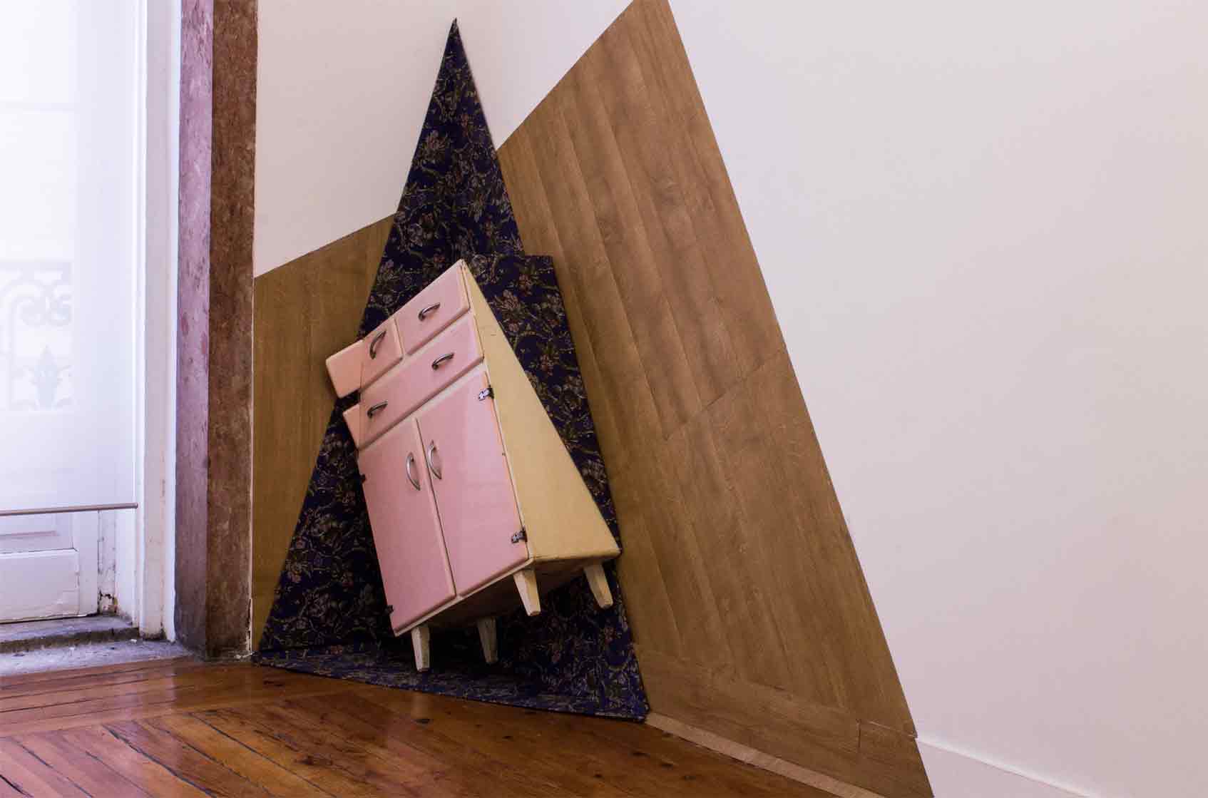 Durante os seus estudos e desde a sua saída da Escola de Belas Artes de Paris em 2012, Cécile Chaput utiliza quase exclusivamente um material com o qual tem uma relação particularmente afectiva: a fórmica. Emblema de uma certa modernidade do pós-guerra, associado à emancipação da mulher e à sua libertação do lar, este material, de fácil manutenção, apresenta-se a partir dos anos 60 nas cozinhas europeias, em gamas de cores alegres que vão favorecer a sua democratização pelo mundo. Desde então, este tipo de mobiliário de cozinha não ultrapassou esta conotação: bem que presente nos stands vintage dos comércios de velharias, foi posto de lado. Cécile Chaput procura-o essencialmente nos Emmaüs ou nas caves e sótãos dos seus conhecidos. Como se quisesse dar-lhes uma segunda vida, Cécile Chaput encarrega-se de desconstruir a sua estrutura, transformando portas e armários em objectos de parede ou instalações, intituladas Flat Burst ou Split Corner, onde se misturam outros elementos como o linóleo, a madeira ou o papel pintado. Destas destruturações e reorganizações nascem efeitos perspécticos inesperados, instalações onde o desmembramento instaura um momento de incerteza e instabilidade. As leis da gravidade, o peso dos elementos, a incongruência da presença de um puxador, de uma gaveta ou de um termómetro impõem a visão de um real escamoteado, cujas regras se tornam dificilmente lisíveis e cujo ponto de partida se organiza frequentemente nos ângulos e cantos, enxertando-se na arquitectura existente. A ordem e a desordem coabitam na sua complementaridade, fruindo a necessidade de restituir um mundo material vivo. Ruínas de uma certa época e de uma certa forma de modernidade que tentam reinventar-se e redistribuir-se nos escombros de um semi-caos – que se aloja e encaixa nos assentos, nos tampos de mesas ou nos armários – as instalações de Cécile Chaput, que se impõem pela sua finitude, parecem igualmente determinantes no seu processo de realização e na série de acções que engendram. A memória dos gestos, que reencontramos nas suas construções (nomeadamente o gesto que envolve o corte sobre este mobiliário de cozinha), é aqui reinventada. No seio deste cataclismo construído e administrado, onde a ordem e a desordem estão totalmente interligadas, a mecânica dos usos e gestos que lhes estão subjacentes mas também a relação com o corpo são realmente para reconsiderar. Como se houvesse uma necessidade urgente de desmembrar este mundo precário feito de objetos, tornando-o um local de construção perpétuo, que se inventaria em desvios e retornos à desordem, para finalmente desenvolver alternativas.