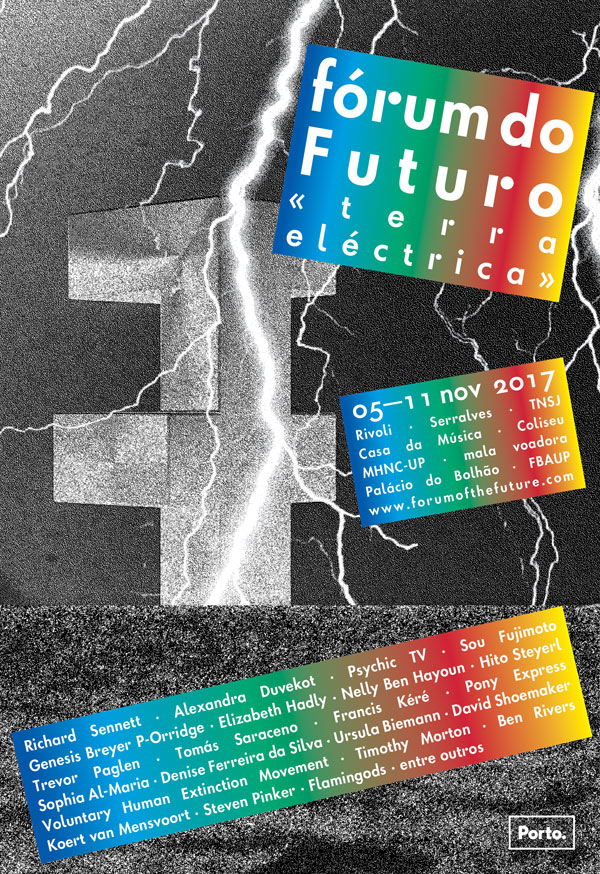 Terra Eléctrica é o tema a partir do qual inúmeros convidados internacionais foram desafiados a viajar até ao Porto para partilhar o seu pensamento e trabalho sobre este assunto, explorado através de áreas tão distintas quanto a arte contemporânea, a antropologia, a astronomia e a biologia. O foco deste ano estará na forma como nas últimas décadas a ação humana interferiu na estabilidade terrestre e como hoje compreendemos a nossa inscrição na Natureza, sem ignorar o facto de que dela fazemos, afinal, parte. Pois as grandes agitações humanas são inevitavelmente grandes agitações naturais. Vivemos hoje uma nova era geológica? Toda a história das civilizações se insere no Holoceno, período “recente” da Terra, iniciado no final da última era glaciar e que abrange todas as formas de vida que hoje conhecemos. Porém, são muitos os que defendem que a própria evolução da humanidade, e seu exponencial impacto nos ecossistemas terrestres após a evolução industrial, nos posicionam numa nova era, intimamente ligada à supremacia humana, e por isso designada como Antropoceno. Ecologia e Biologia serão áreas centrais no debate. Violência, Prazer e Liberdade, questões incontornáveis na discussão. Estaremos perto da Extinção? Há até quem queira provocar o fim da Humanidade. Mas viveremos, apesar de tudo, numa sociedade cada vez menos violenta? Uma das personalidades americanas mais influentes do seu tempo argumenta que sim. E aqueles que sentem desejo sexual por plantas e árvores? Alguns são para levar a sério. Nesta era digital, é afinal possível viver e sobreviver, sem barreiras, o Natural? Entre 5 e 11 de Novembro, no Fórum do Futuro apresentam-se e discutem-se ideias, das mais canónicas às mais imprevisíveis, sobre um dos temas mais relevantes do mundo atual.