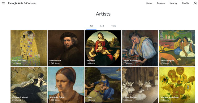 A Google uma vez mais encontra-se na linha da frente da propagação e compilação de informação e o site Google Arts & Culture é o exemplo talvez mais extraordinário atualmente daquilo que pode ser o universo virtual de visitas a locais emblemáticos de exposição de objetos de arte, assim como de documentação e informação universal sobre arte. Neste site / diretório da Google podemos explorar visitas virtuais com imagética em alta definição de obras de arte e coleções com o potencial de nos envolvermos por horas infinitas nos museus do mundo inteiro, num só local.