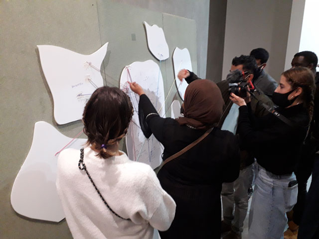 A migração e a ideia de comunidade são temas centrais na prática da artista. O seu trabalho pretende tornar visível o contexto sociopolítico, explorando a relação entre poder e visibilidade e como a arte revela esses elementos e dinâmicas que se encontram fora do nosso alcance de visão e compreensão. A artista aborda interações entre o espaço e as relações humanas – a micropolítica. Aprofunda a ideia de contexto como espaço simbólico, onde os projetos não são apenas instalados, mas também de lá emergem.