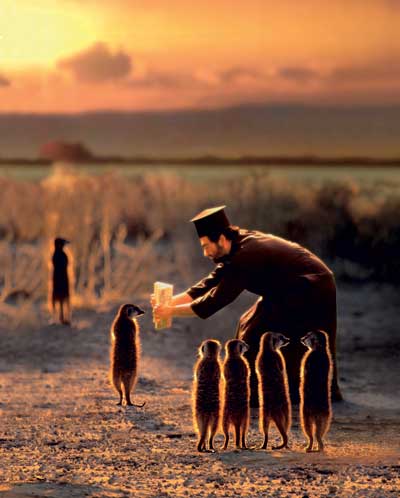 Munkki Juhani faz ler um capítulo do Kalevala às suricatas lapons, 2002