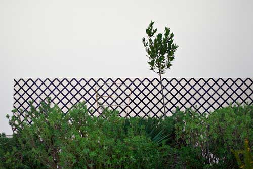 Réplica de painel de azulejos da estação do Entroncamento. Vasos em cimento, com plantas, encontrados no exterior das estações. Foto: David Rato.