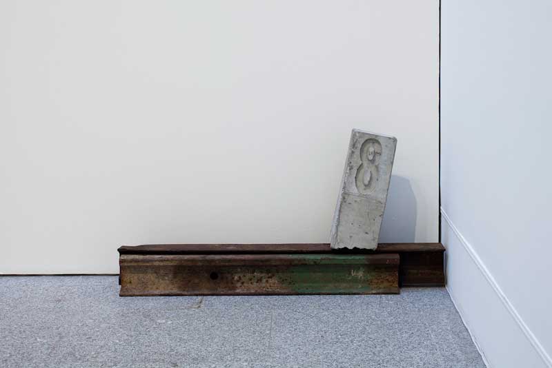 Marco quilométrico em betão sem pintura e carris de linha desactivada. Foto: David Rato.