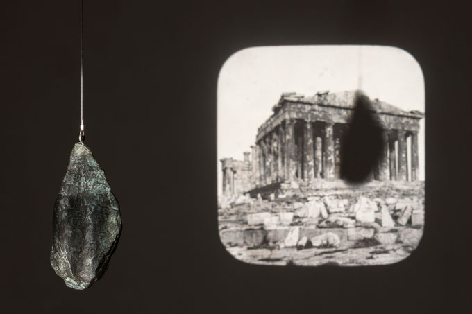 Na exposição DIANTE-DENTRO, é a imagem intersticial - resultado do efeito de paralaxe, do reposicionamento dos corpos e da sobreposição de campos perceptivos - que intui o devir, conceptualizando a denominada “imagem com relevo” e a relação entre ar (imagem) e pedra (objecto- escultura). Num primeiro núcleo da exposição, e a partir de colecções privadas, é apresentado um conjunto de cartões estereoscópicos, positivos em albumina e visores do séc. XIX, na constituição de uma antecâmara desenvolvida em parceria com a investigadora Ana David Mendes. A exposição inclui, a par deste intróito, projectos de artistas contemporâneos que reflectem as relações históricas entre o fotográfico e o escultórico na intersecção de imagens “esculpidas” e o dispositivo.