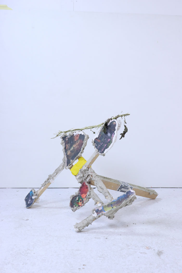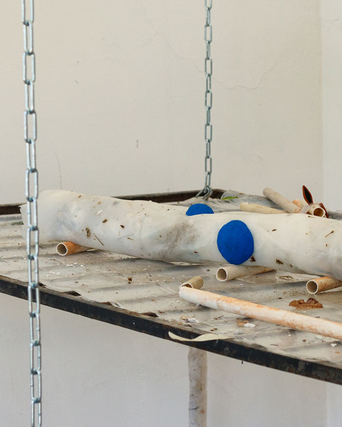 Nestes objectos mais estáticos, referindo-me à parte mais escultural do trabalho, parece-me que pressupõe sempre uma existência de alguma coisa que passou por ali, mas que já não está. Ou uma paisagem que já foi habitada, mas que agora não está lá ninguém a vivê-la. Algo que foi usado e que foi ali deixado; o objecto tem uma falta, um vazio, a do personagem que a activou. Há uma sensação cenográfica, que existe para que algo aconteça. Ou mesmo como um objecto utilitário, em que o seu uso se encontra sempre em estado de latência.