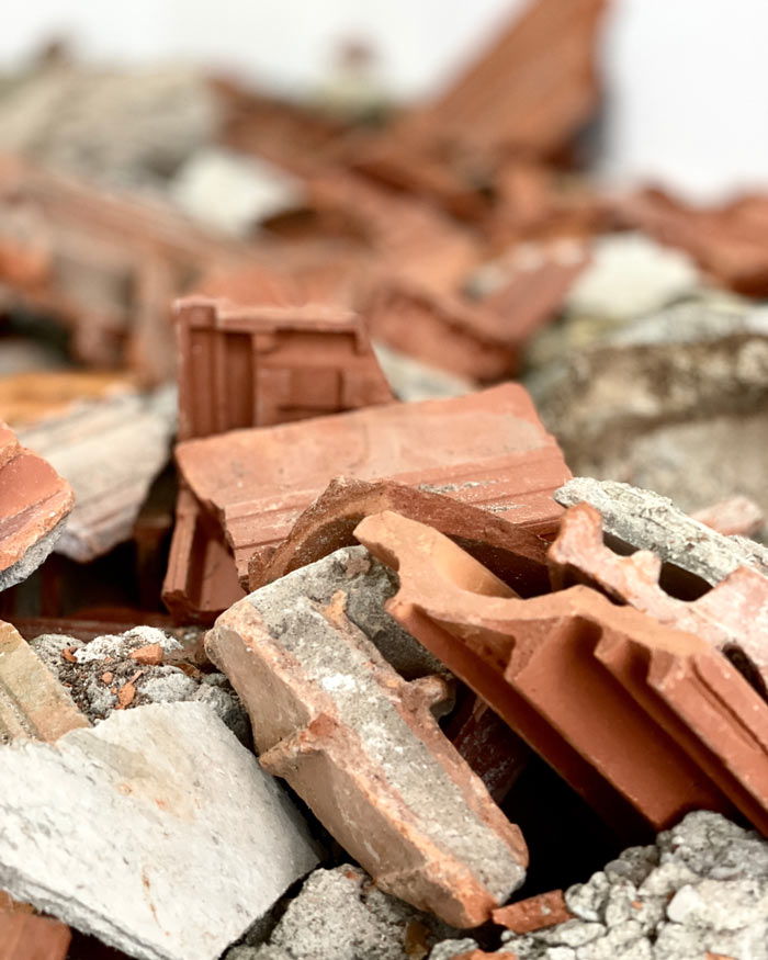 Na exposição Cartografias de Ausência, a fotografia assume uma função ainda mais dinâmica, como uma chave para abrir o significado dos espaços em ruína. A rotação das imagens, como no caso da fotografia sobre os tijolos e resíduos vegetais, não se limita a um mero gesto estético, mas insere uma dimensão performativa na obra, onde a ruína não é mais um objeto estático, mas um espaço vivo que interage com o corpo. Essa performatividade da imagem é um convite à reflexão sobre o espaço como uma paisagem em constante mutação, e o corpo como um agente que reconfigura e dá novos sentidos ao que parece estar em ruína.