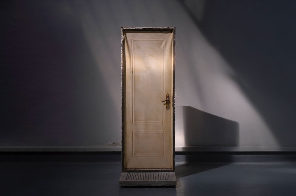 Em Until the Door Separates Us (2023), a porta, tradicionalmente concebida como um limiar entre dois espaços, é desconstruída na sua função simbólica e prática. A transparência da porta elimina a sua opacidade, tornando-a uma forma fluida que dilui as fronteiras entre o interior e o exterior, entre o visível e o invisível. Esta subversão da porta enquanto elemento de separação gera uma reflexão sobre a dualidade da existência — vida/morte, presença/ausência — e questiona a natureza do espaço como um ponto fixo, propondo-o como um espaço de transição contínua.