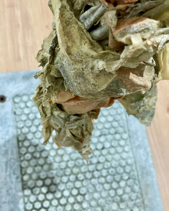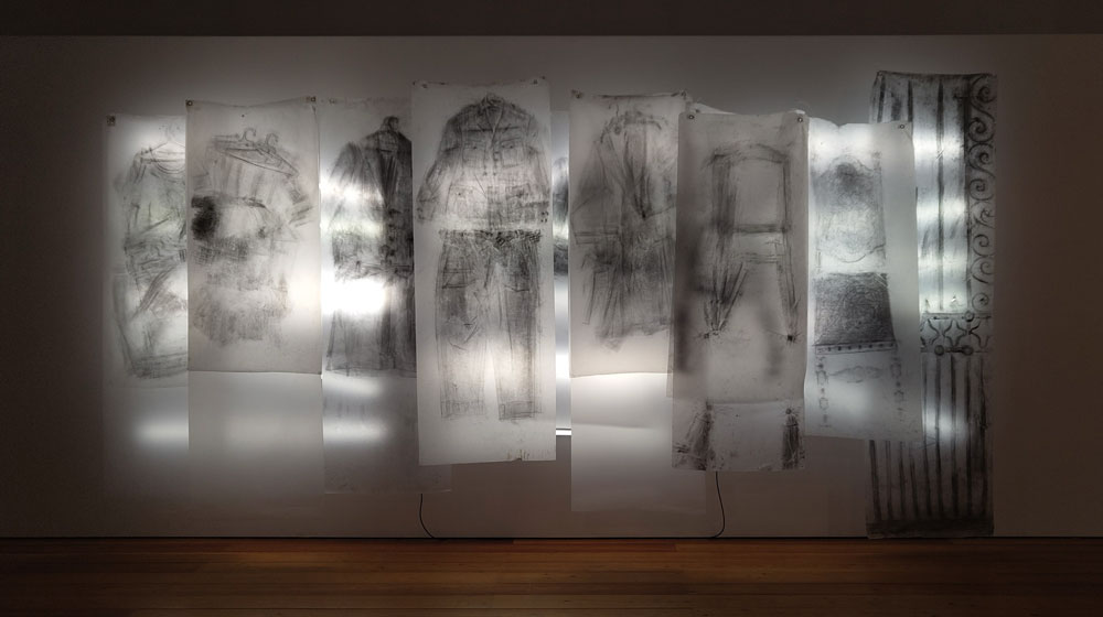 O papel vegetal, pela sua translucidez, remete à fragilidade da pele, ao toque humano e à interação entre o corpo e o mundo. A utilização do grafite, ao capturar texturas e marcas dos objetos, inscreve a memória e o afeto no papel, funcionando como uma impressão direta das superfícies. Este processo remete à ideia de ecdise, associando a transformação da superfície do corpo ou do objeto à memória e à identidade. Como Merleau-Ponty sublinha, o corpo não é apenas o recetáculo da experiência, mas também o meio de expressão da nossa relação com o mundo (Merleau-Ponty, 1964).