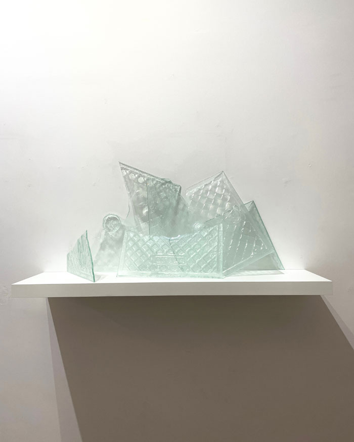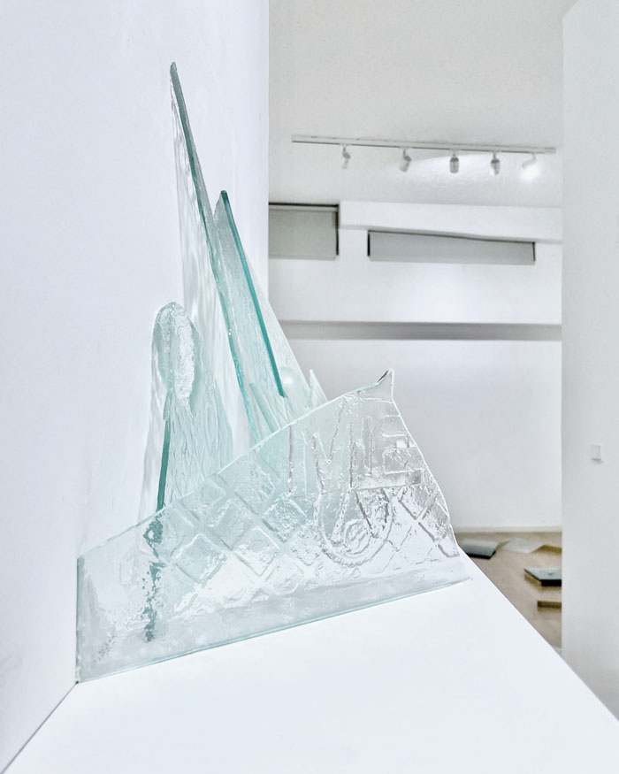 Outros trabalhos, como Fragmenta Lacu (2025) e Confessio Silentis (2025), incorporam vidro e inscrições textuais, problematizando a relação entre linguagem e matéria, entre visibilidade e silêncio. A transparência do material permite um jogo de perceções que convida o espectador a interrogar os limites entre o que se vê e o que se intui.