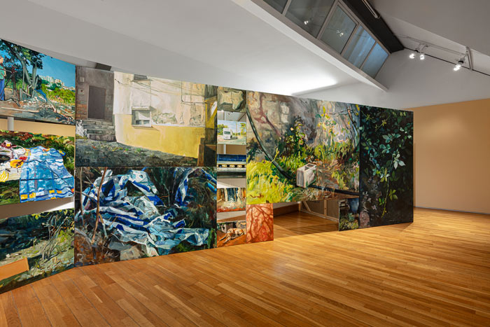 PN: Estas instalações, que formam paredes de malhas pictóricas criam um efeito imersivo pela saturação de imagens pintadas, cujos temas variam entre retratos, naturezas-mortas, paisagens e interiores. Esta experiência assemelha-se a uma espécie de scroll que, por analogia, somos impelidos a fazer através da observação do teu trabalho. Partindo da tua atitude enquanto fotógrafo e pintor, gostava que nos falasses da distinção que fazes entre “olhar a pintura” e “ver pintura”.
