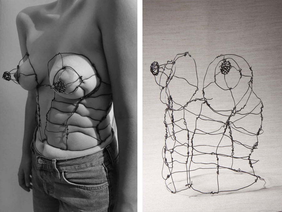 Mas essa materialidade incorporada pode ser também um trabalho do tempo, uma forma construída pela história ou pelo hábito, uma espécie de fôrma em que nos inserimos, ao mesmo tempo escultóricos e esculturados. Um artefacto que vestimos porque nos foi dado a vestir, que se forjou pelo fogo do passar dos anos, que traz a marca do nosso corpo ou dos corpos que vieram antes de nós. É uma forma de inscrição de relações históricas, de género e de poder, marcas da duração das formas de ser, de estar e de sentir do mundo. Formas que podem ser particulares ou colectivas, marcados dos hábitos ou dos movimentos, das fragilidades ou das estruturas rijas, dos padrões e das formas que expressam ideias, sentimentos e sensações. Formas que são memória, tempo cristalizado no espaço. Ser mulher e a ideia de feminino encontra, aqui, sua expressão material - as formas de inscrição daquilo que deve ou não deve ser posto em prática enquanto sujeito de um género; aquilo que inscreve qualquer noção universal em um corpo particular; aquilo que dá contorno e limita; aquilo que, da prática ou da história, propõe a forma externa de um corpo.