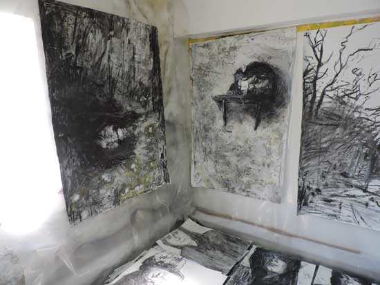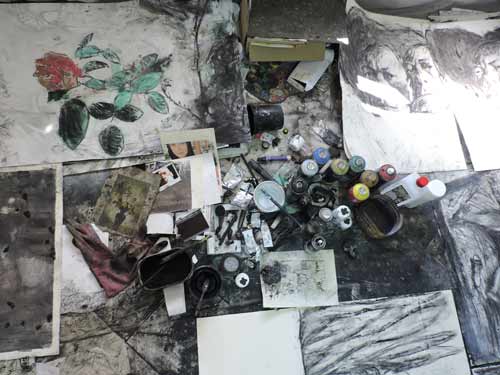 JJ: Eu sou uma pessoa sem projectos, aquilo em que trabalho é diariamente, portanto não há nada de novo a não ser o que acontece todos os dias. Não existe um planeamento daquilo que faço. O que pode ver aqui no chão são desenhos feitos nas últimas semanas.
