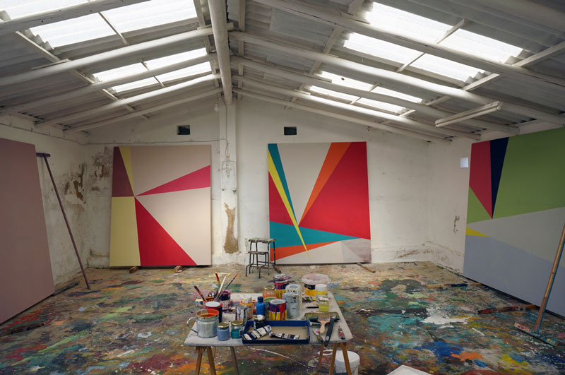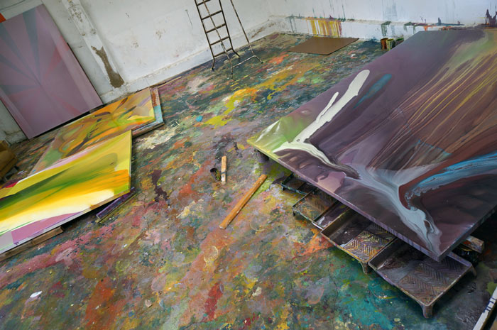 Eu não preciso de pintar muito. Três ou quatro já está bom. Trabalho rápido, dois dias, uma semana ou duas. Há uma espécie de processo tecnológico relativamente à tela que determina as regras. Tenho que esperar que as camadas sequem, etc.