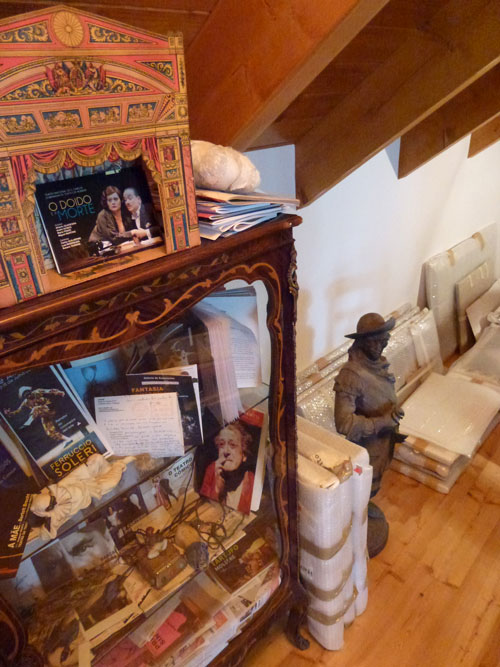 AG: Esta exposição “Vozes Interiores” é toda feita com os objectos de minha casa. É um olhar sobre a minha casa, sobre mim - sobre o meu olhar solitário. O Sérgio Mah escreveu um texto [para o catálogo da exposição] chamado “Olhar em volta”. O que é que está à minha volta quando já não há mais nada? A casa é o primeiro e o meu último refúgio. É a torre do Montaigne, é de lá que tudo se pensa. É o mundo, é o Éden. É a casa, e a casa é o nosso atelier, a nossa oficina, a nossa mortalha, é a nossa cruz, é a nossa festa, a nossa fonte. Tenhamos uma casa maior ou menor, no campo ou na cidade, a casa é a nossa cidadela.