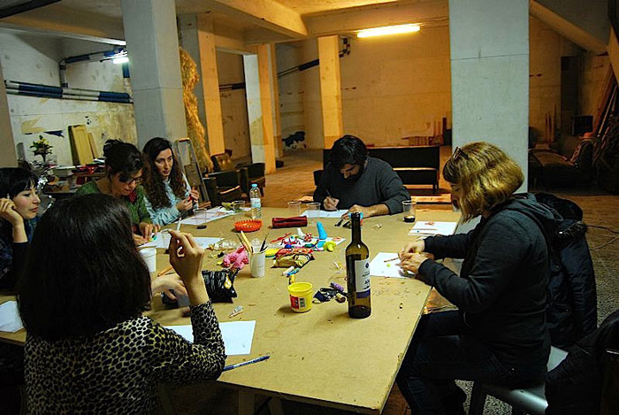 Depois existe uma questão práctica que tem a ver com necessidades de adaptação mas que se prendem com o tipo de trabalho que está a ser desenvolvido em cada momento e que tem de ser gerido entre os artistas, definindo o período de tempo em que cada um está a desenvolver determinado projecto, qual a parte do atelier que cada um utiliza, etc.