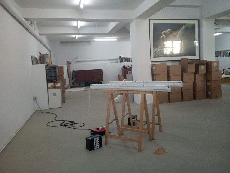 LV: A peça que estava no centro desta exposição, um conjunto de caixas de cartão empilhadas num equilíbrio instável, lembrava essa mudança recente na tua vida. Não só havia ali um constatar do lado material da viagem (as coisas físicas que pesam e que não desparecem e se querem levar), mas também um alertar para uma situação de equilíbrio difícil entre momentos de partida e de chegada. A mudança, e o sentimento de presença/ausência que se experimenta, é um tema recorrente no teu trabalho. Podemos dizer que esta peça é a mais próxima da tua vivência actual, como artista recém chegado?