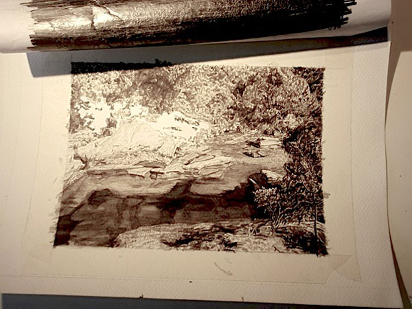 JFS: Para além de uma série de objectos zombies, à procura de família, há duas ou três séries de que te posso falar. A primeira, e mais breve, chama-se "Dias na Birmânia" e trata-se de uma reflexão sobre os "turismos/colonialismos" despoletada pela vida da Troika e situações subsequentes, feita a partir de uma série de gravuras sobre o Egipto no tempo da construção do Canal do Suez.