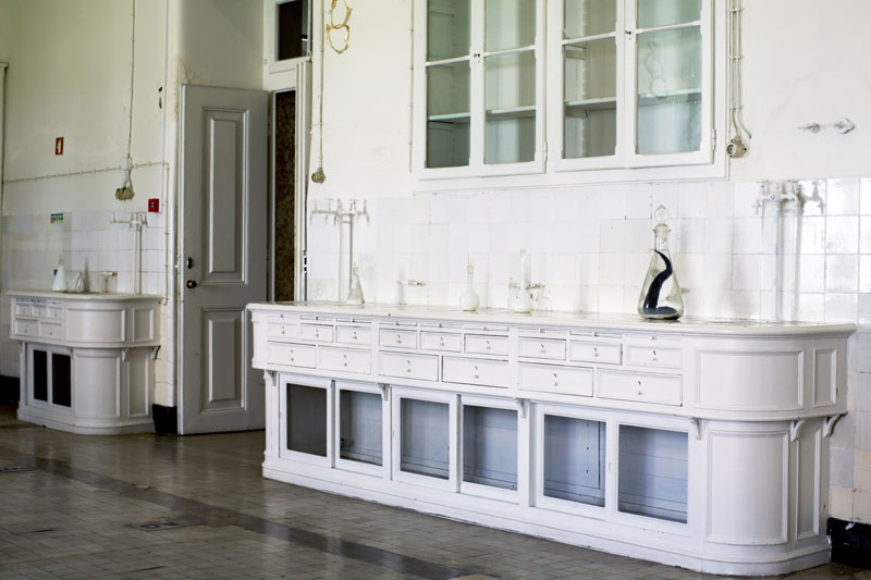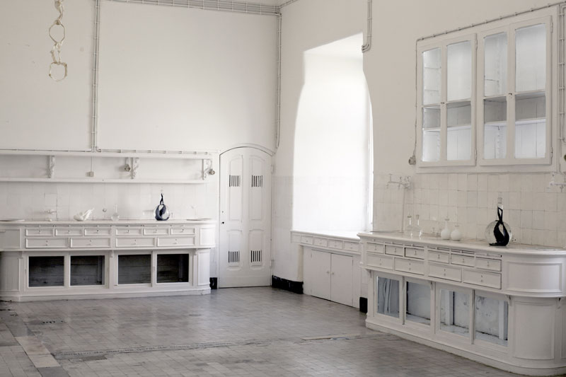 Em residência no espaço Hangar foi, no entanto, no antigo laboratório químico do museu que “montou” o seu atelier e adaptou a exposição “Vis Attractiva”, que é possível visitar até 10 de Setembro. Todos os dias ia para lá fazer experiências na forma de instalar as peças, num processo de partilha entre o artista e o espaço. Naturalmente, veio com uma ideia que se foi alterando à medida que começou a interagir com o laboratório. Diz que foi uma experiência nova a todos os níveis: primeira vez que expôs em Portugal, primeira vez que trabalhou num espaço deste género.