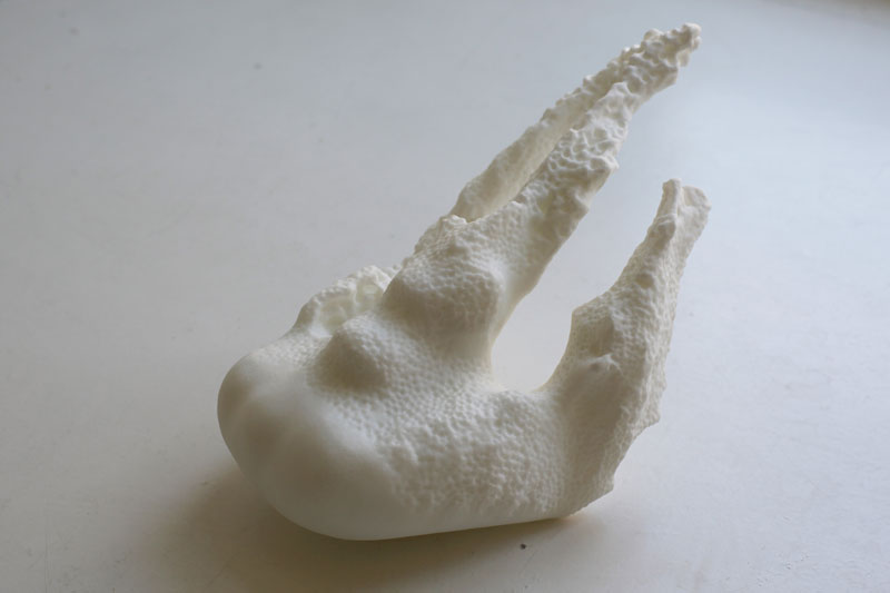 A escultura em mármore assemelha-se a um crânio. A ideia é parecer um artefacto que pode ser um fóssil animal ou qualquer coisa vegetal, mas que não se percebe o que é com exactidão. “Isso gera maravilhamento”, diz Antonio Fiorentino, acrescentando que ”as esculturas presentes nesta exposição não têm referência ao tempo actual. Não quero fazer referência à minha época, pois assim poderei gerar um trabalho que dure para sempre, que não tem tempo nem se percebe de quando vem, se do passado se do futuro. São relíquias contemporâneas.”