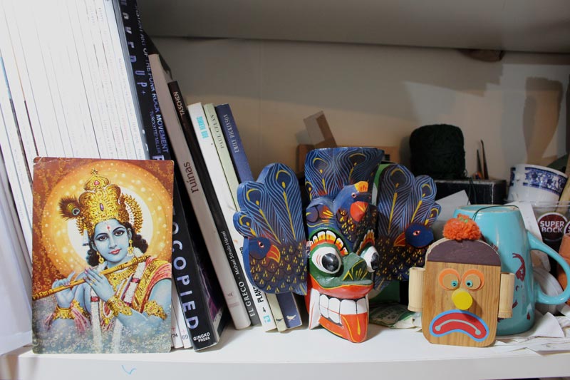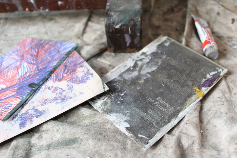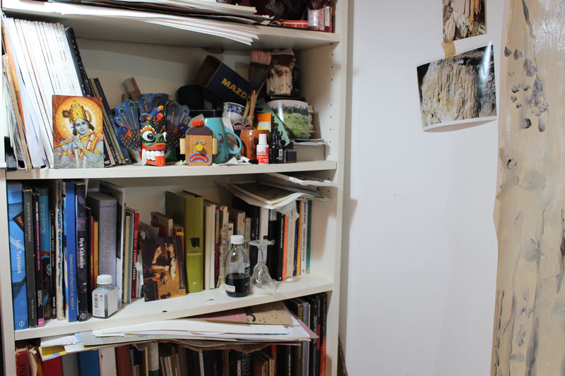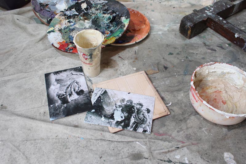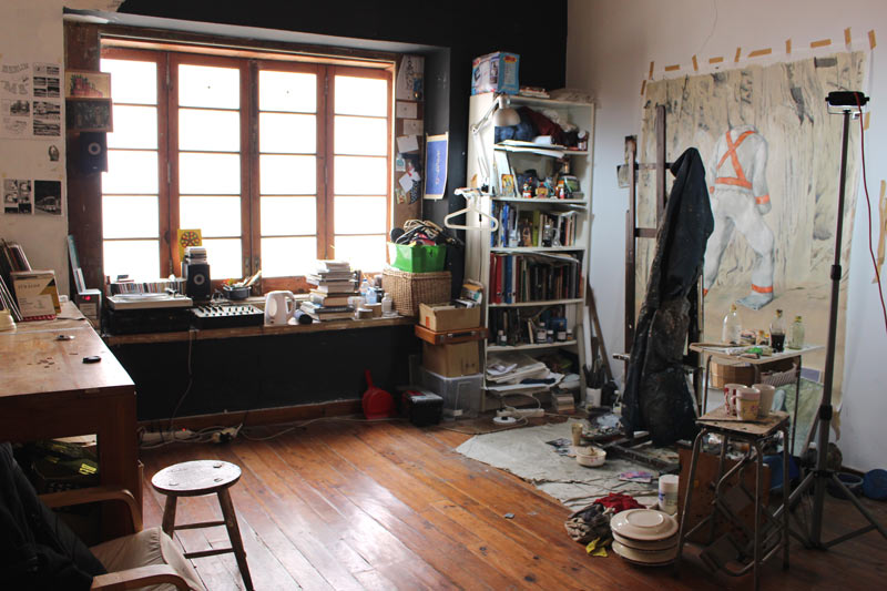 Também tenho muitas referências que não vêm só da pintura, por exemplo em viagens de automóvel é muito comum ter ideias para pintar. Esses momentos de distração são muito importantes. Outras vezes, a vontade de pintar também vem de conversas, dos sonhos e de outras fontes imagéticas que não são necessariamente do mundo da pintura, muitas vezes são do design, da ilustração, da instalação, da escultura, do cinema. Entre outros, posso dar o exemplo do artista de BD belga Olivier Schrauwen ou Gee Vaucher, a artista que fez o material gráfico dos Crass, uma banda inglesa de anarcopunk, que tem um trabalho de colagem e pintura a guache delicioso, mas também desconcertante…