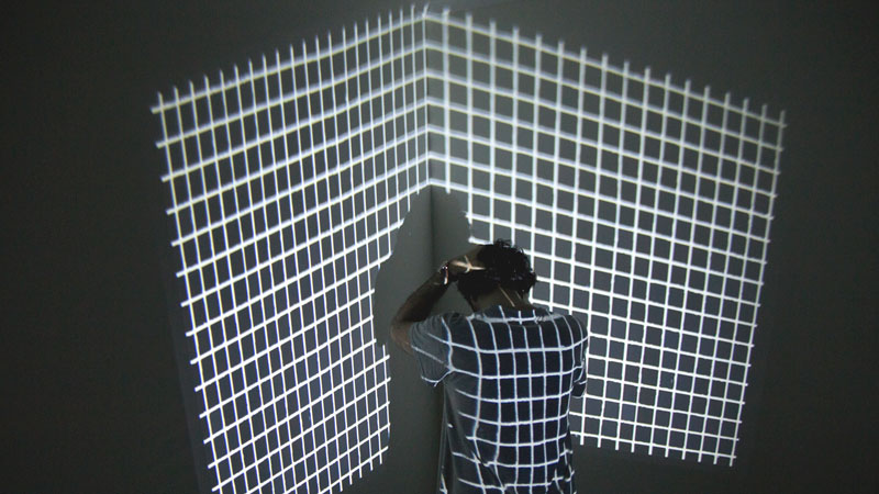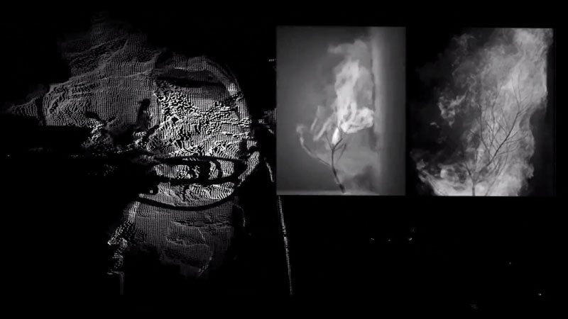 JPF: A peça ( )3, criada juntamente com o João Cristóvão Leitão, é um desafio de tentar mexer com as várias emoções do espectador através da singularidade de um cubo. Os nossos sentidos têm um papel cada vez menos autêntico e se antigamente tinham o propósito da sobrevivência, hoje são formatados para serem usados pela indústria do entretenimento. Na verdade, são mecanismos sensoriais para o funcionamento das nossas funções cognitivas, sendo um dos casos mais basilares, a memória, que tem vindo a ser descartável, volátil e sem apego à atenção. Ver um vídeo numa galeria exige um compromisso radicalmente diferente em comparação com uma peça estática, exige mais espaço, tempo, uma determinada condição física e mental. Os média mais atuais trabalham os sentidos colocando o espectador numa posição vulnerável, é uma das consequências da ciência a redefinir a humanidade. Quando uso a tecnologia para levar o espectador a viver os seus campos sensoriais, deparo-me com algo mais vivo que o próprio homem, a máquina inteligente.