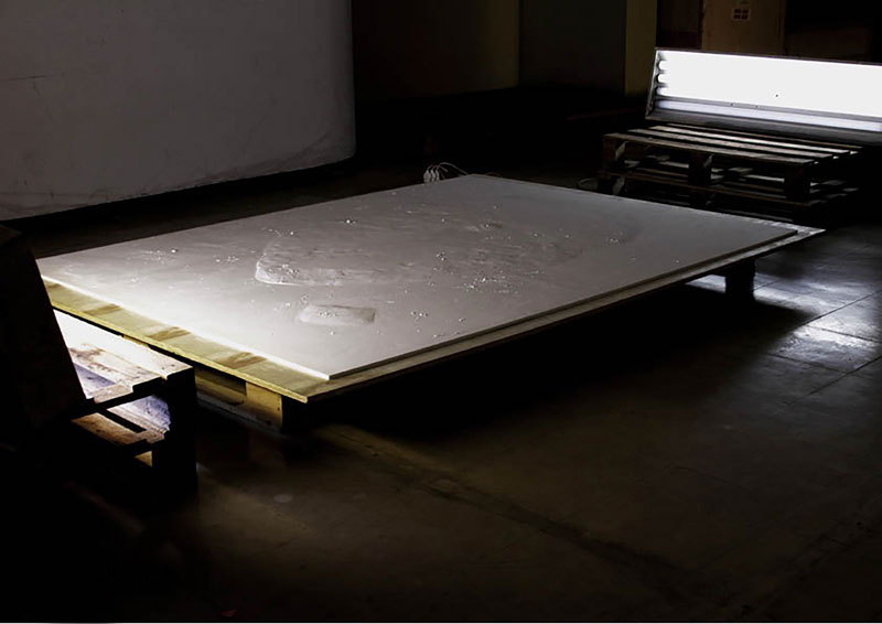 LV: Presumo que tenha havido alguma vez nesse percurso um desejo de que a obra revelasse ao público esses elaborados processos construtivos que caracterizam o teu trabalho. Lembro-me que abordaste precisamente essa questão do como trazer o processo de trabalho para a imagem na conferência que deste em Maio último na Faculdade de Belas Artes da Universidade de Lisboa, dizendo que é no “mistério” da imagem que está essa revelação ao público. Consideras que o teu trabalho habita esse hiato entre o processo e o resultado que daí advém? O processo não é apenas processo, ele já faz parte da obra?