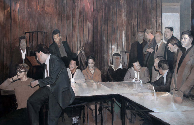 LV: Recorres a vários registos fotográficos, muitas vezes de arquivo, para construíres as tuas pinturas. Como é que te deparas com esse material? Partes de um tema e depois inicias uma pesquisa visual ou encontras primeiro as imagens e então trabalhas a partir daí?