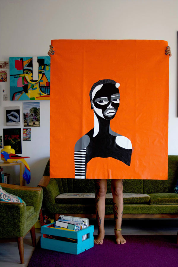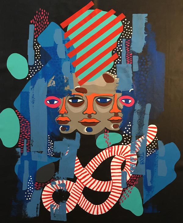 J.T: Eu gosto muito de contraste. O desenho gráfico é, sem dúvidas, a minha base e eu adoro e foi o meu treino. Porque eu não tenho formação em pintura, sou autodidacta. E no mundo do desenho gráfico há muito contraste, equilíbrio, texto, mensagem, que é a parte de designer e comunicação visual. Eu adoro cores e se calhar a minha ligação com África faz-se através das cores.