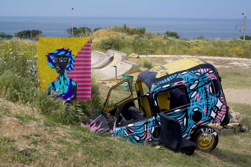 Coincidi, pela primeira vez, com a Joana Taya na Vª Edição do Fuck`in Globo (2018), onde ela participou pintando um dos quartos do hotel, na cidade de Luanda. Mas foi depois de ver que um dos quadros da sua exposição “Partículas Encantadas” (2019), que é, ao que me parece, uma prolongação da atmosfera criada entre aquelas quatro paredes, que decidi, definitivamente, que seria interessante saber como ela gere o seu processo criativo, o que lhe vai na cabeça, como vê o mundo.