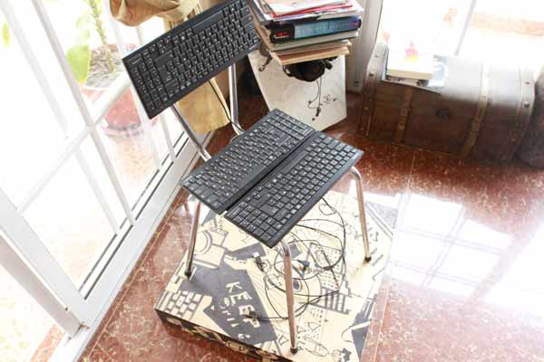 BH: Foi ainda durante a faculdade. Fui convidado para realizar um trabalho de cenografia, com a cenógrafa Macha Makeieff, na exposição Jacques Tati, na Cinemateca Francesa em Paris. A mostra foi um sucesso, e foi aí que conheci os fabricantes e editores de mobiliário de design Domeau & Pérès, que representam nomes como Philippe Starck ou Pharrell Williams. Nessa altura construi uma série de cadeiras com teclados de computador, sob o título Moye. O Bruno Domeau e o Philippe Pérès começaram a editar as minhas cadeiras. Ter feito isso com estes editores foi fantástico! Não me considero designer, eu experimento novas situações e estou sempre a questionar sobre um projecto, ou sobre o que é a arte, tal como o Marcel Duchamp com o urinol, ou a Joana Vasconcelos que faz sapatos com tampas de panelas. Até onde é que podemos chegar? Nessa mesma altura também fui convidado para fazer um videoclip para o M, um cantor francês… foi assim que tudo começou, e agora já ando a pensar no que vou produzir para 2017, perante tantos convites.