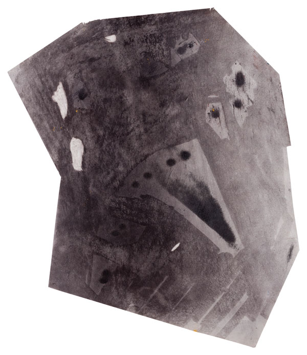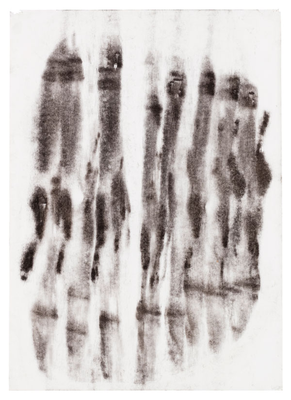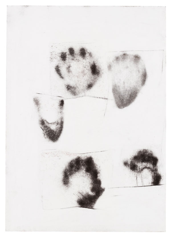 Esses desenhos surgiram também numa altura em que estava a pensar que a inserção do corpo tinha de ser activa no desenho, ou seja, que tinha de deixar de ser uma coisa que está no subterrâneo do desenho. Nessa altura comecei a dobrar coisas, muitas vezes nesses entre-tempos até conseguir atingir a atenção para o acto do desenho. Começava com acções muito simples como dobrar pequenas pontinhas. Fui coleccionando pequenas dobras, desenhos dobrados. O que aconteceu foi que esses desenhos resultaram de um corte de uma mancha anterior que tinha sido dobrada.