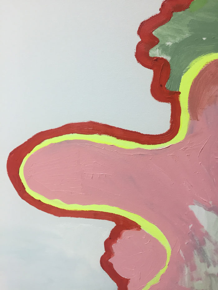 MG: Talvez se destaque um pouco mais do que o resto. Destaca-se nas últimas pinturas sobretudo. Há figuras: línguas, intestinos, traqueias, cocós - e tudo fica mais literal. É mais óbvio do que o que falávamos antes.