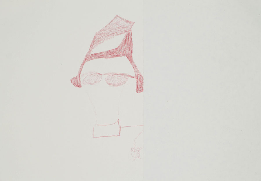 Recorri à arte bruta, ao graffiti, à arte primitiva, aos desenhos infantis... todas estas referências de desenhos que estão fora do mundo institucional, práticas que sempre existiram e irão existir mas que, por norma, não são consideradas artísticas. A vontade de assinalar alguma coisa - os tags na rua, com o seu desafio à autoridade, inscrições de marinheiros nos portos, as portas pintadas a corrector “Luís ama Luísa”, corações nas árvores, desenhos de pacientes de hospitais psiquiátricos - alimenta-se de outro tipo de forças e traz uma força brutal para o desenho. Por sua vez, a arte bruta é completamente anacrónica e completamente maravilhosa, porque está tudo noutro nervo, com uma intensidade absurda. São desenhos concentrados, que acertam e que atingem alguma coisa que nós, todos aqueles que têm uma maior distância para com as coisas, não conseguimos atingir. Já o desenho infantil... as crianças sabem desenhar, a forma e intensidade com que se atiram para a folha… é como se soubessem, se compreendessem o branco da folha: sabem desenhar, são pequenos génios do à vontade no desenho. Até, claro, quererem começar “a desenhar bem” e destroem essas capacidades incríveis. Começam a ilustram e a preencher, e perdem o Desenho por quererem fazer uma coisa artística. Até lá, o desenho ainda é corpo, todo o desenho é prolongamento do corpo. Só quando há essa cisão do corpo com as coisas é que os desenhos das crianças se começam a estilizar e a perder potência. Todo esse núcleo de desenho marginal, impulsionado por uma necessidade do fazer e do assinalar, interessava-me. Esses desenhos, da série “Clown” tratam-se de pequenas apropriações. Apropriações de pequenas partes de coisas que são muito maiores. Coisas virtuosas, ou não, mas cheias de intensidade, que eu recorto e coloco noutro contexto, o artístico. Altero os meios, tentando reproduzir as imagens. A tradução dessa imagem, a cópia, a apropriação.. era o que me interessava. Juntamente com a mudança de contexto das coisas. A mesma coisa, reproduzida noutro contexto, tem um poder mágico diferente da sua origem. Um pouco à semelhança do que fez Picasso ou de um restaurante de cozinha de fusão. [riso] Os desenhos “Clown” estiveram mesmo para se chamar “Fantasma” ou “Ghost” porque estão cheios destes fantasmas da referência, do recorte, da cópia apropriativa.