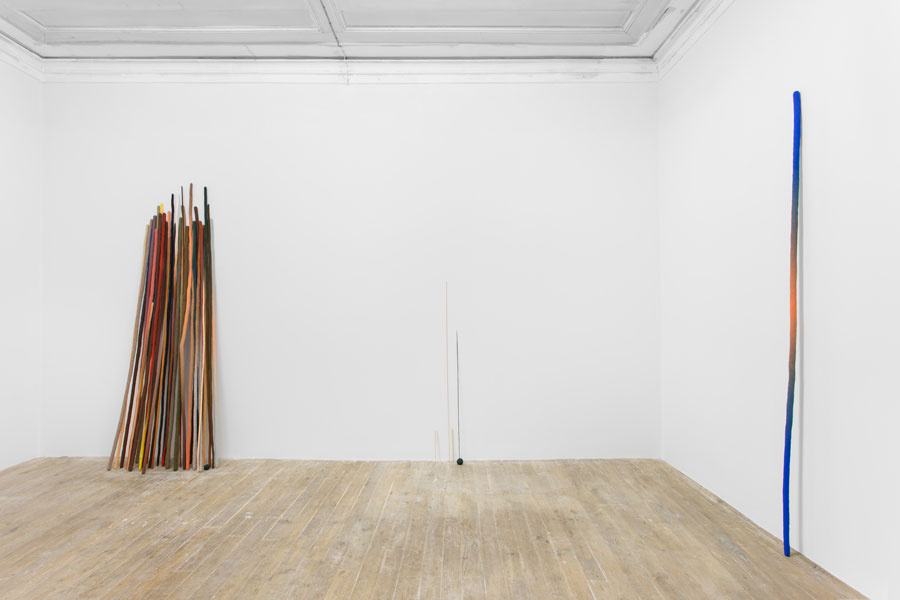 RC: As duas hipóteses que colocas. As dinâmicas de jogo estão sempre em movimento. Na construção e na apresentação. Em “Jogo do Cego” fui acrescentando elementos; primeiro a linha que se esbate na parede, depois um outro pauzinho pintado com cores que fingem ser a própria madeira... O processo é todo cumulativo; há uma espécie de falsificação contínua. Á medida que te aproximas do objecto compreendes um engano e continuas a ser enganado de outras formas.