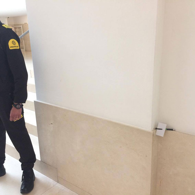 SS: Foste muito perspicaz nessa relação porque eles são quase a mesma coisa, partilham a mesma natureza. “Working at work” surgiu como uma estratégia de escape. Comecei-o durante um período da minha vida muito assoberbado (apesar de o ter exposto em 2018 ele é muito anterior) de aulas, doutoramento, visitas guiadas. Sentia, na altura, que estava a perder espaço para pensar a minha prática artística. E então passei a fazer fotografias de pequenas coisas que encontrava, encontros súbitos. Situações, vestígios de acções... Engenhos transitórios, coisas que me criavam uma tensão. Relacionavam-se, estas fotografias, com um modo de olhar, sobretudo. O título vem de Rauschenberg, creio, com esta ideia de trabalhar dentro do trabalho. Então este projecto é a documentação de esculturas involuntárias (parafraseando Brassai), encontros súbitos, pequenas tensões do dia a dia. Fui coleccionando. Está relacionado também com várias leituras que vinha a fazer, desde Tolentino de Mendonça, com a ideia de reparar, a Georges Perec. Há um livro do Perec fascinante que é “Uma Tentativa de Esgotamento de um Lugar Parisiense”, em que Perec se sentou durante três dias numa esplanada de Paris e foi fazendo apenas anotações, muito precisas, do que via na praça. O que lemos nesse livro são fotografias escritas. São imagens. A atenção de Perec vai caminhando para o detalhe, há uma economia ou melhor uma ecologia da atenção há medida que os dias passam. O livro é fascinante por essa razão, a de nos colocar perante o desafio, que hoje todos os artistas enfrentam, que é o de parar a vertigem da aceleração. A necessidade de recuar e parar. O que ele faz é parar o olhar. E assim dá-lhe profundidade. Foi uma referência muito forte para estes trabalhos.