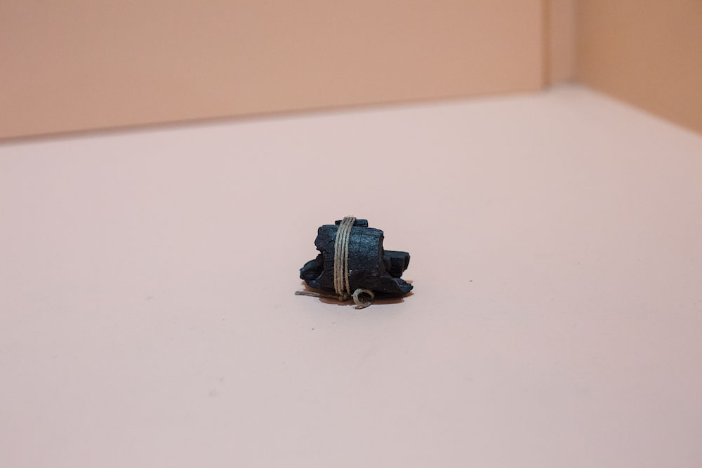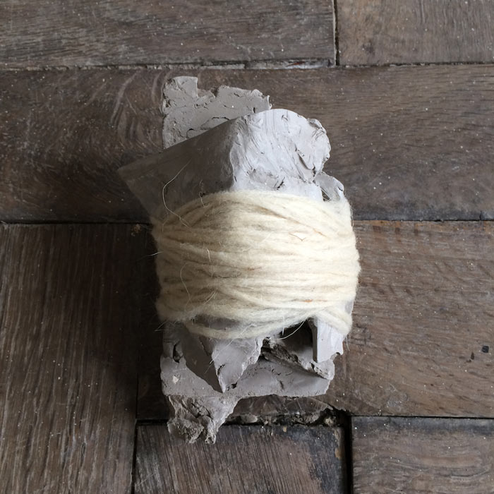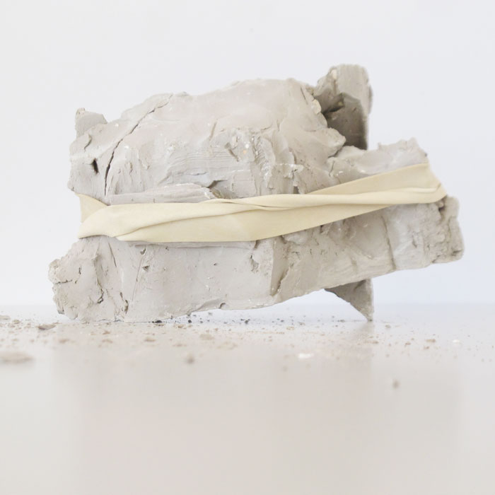 TGM: Sim. Há outros objectos onde o gesto é outro. Numa outra peça, com pedaços de barro, uni-os com um elástico, depois de os recolher e juntar. O elástico acabou por se romper, o barro partiu-se e voltei a juntá-los, atando-os com lã. Este objecto é feito não pela união, mas pela repetição dos gestos de união.