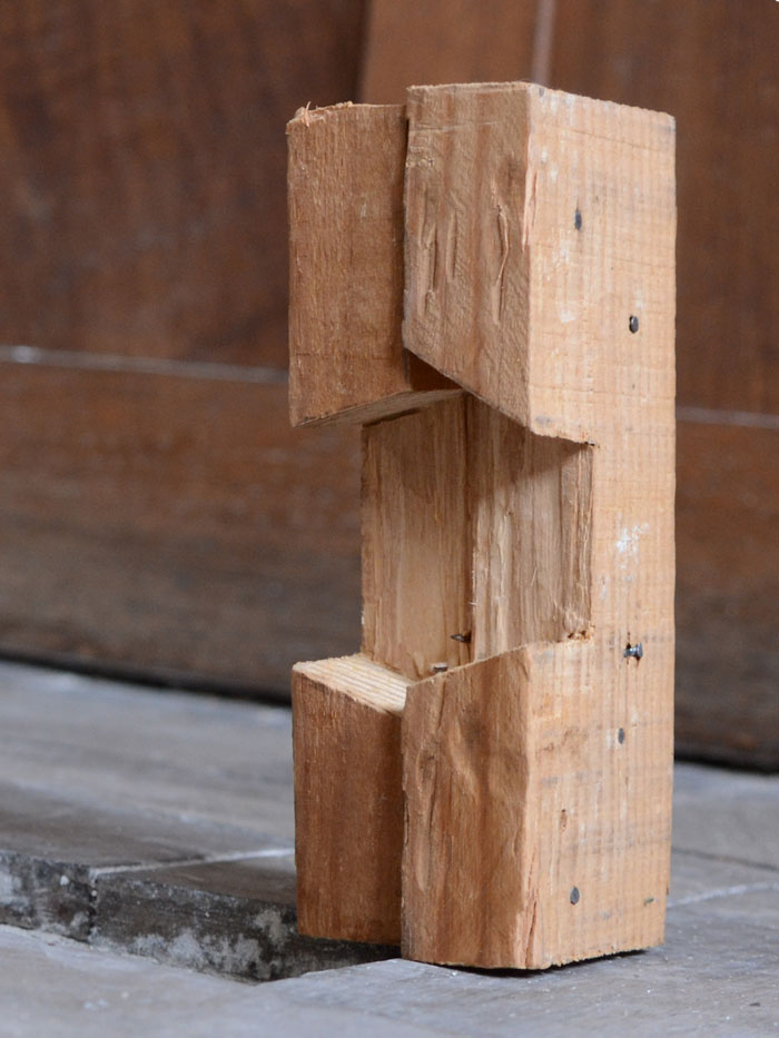 Um dia simplesmente martelei os pregos uma na outra e forcei-as a estar juntas, sem grandes preocupações. Eu sabia que podia tentar juntá-las de uma forma muito certinha, e até podia ser interessante eu tentar alinhá-las e não conseguir, mas decidi outra coisa. Juntei-as com naturalidade e martelei.