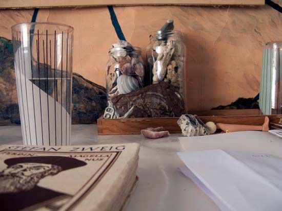 Esse atelier que não requer espaço, que me acompanha para todo o lado e não tem horário de funcionamento, é um pouco caótico. As ideias para trabalhos vão aparecendo, vão sendo ruminadas e como a maior parte das vezes não há tempo para as concretizar, vão-se atropelando. Se não concretizo logo, surge uma nova ideia e depois outra, abrindo lugar a alguma dispersão.Vou registando através da escrita e de imagens o que me interessa. Acaba por ser uma exposição que surge ou um outro projecto em que vá participar a despoletar a concretização de uma dessas ideias. Essa materialização acontece no atelier físico, mais arrumado que o mental. Quando estou a trabalhar sou metódica e organizada mas não gosto de projectar em pormenor, entro numa espécie de transe, afasto-me do mundo, dou espaço ao erro que tem um grande potencial. Em seguida vem a fase de edição que requer outra postura e onde o erro deve ser evitado.