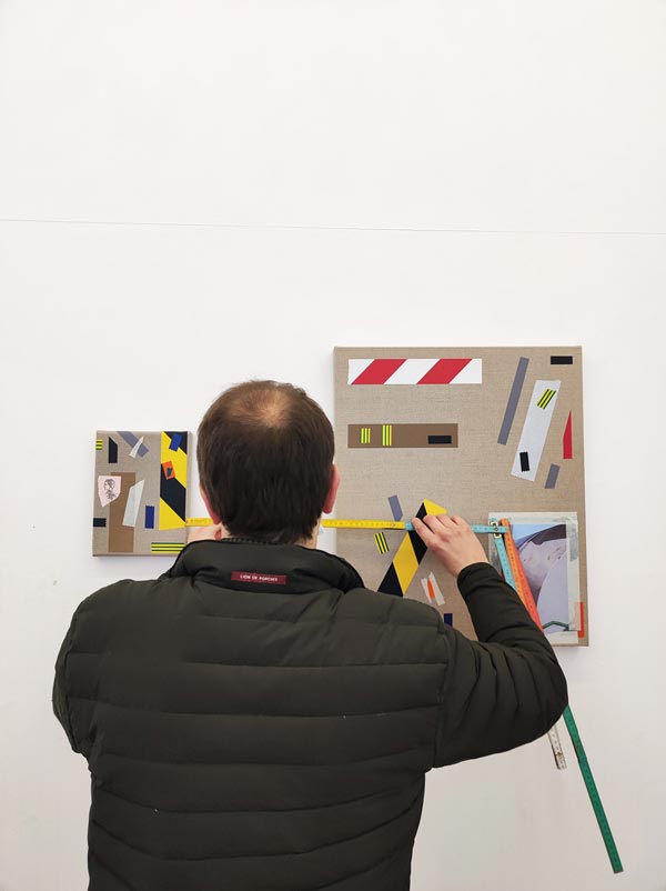 AS: Sim, por norma tenho. Mas o que acontece na maioria das vezes é que deixo que a pintura encontre a sua própria métrica, ou por não ser suficiente, ou por sentir que falta alguma coisa. Nem todos os tipos de fica cola aparecem em todas as telas, mas tem a ver com a necessidade de cada composição se sentir concluída. Como a fita cola ajuda a definir as linhas de força da composição pictórica, são também elas que definem como é que a pintura deve acabar, o momento em que temos que parar.