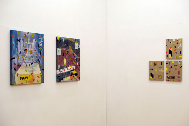 Esta exposição é um bom momento para ver de forma escancarada a minha preocupação com a comunicação que cada peça tem com a outra ao lado, ou seja, a própria disposição das peças que faz com que eu as veja com um carácter expandido. A forma como eu organizo, escolho e crio ligações sempre esteve presente como parte do processo. Esta continua a ser uma exposição bem-comportada, porque há um lado muito tradicional, da tela pendurada na parede, e as transgressões são quase um piscar de olho - como a fita cola no rodapé por exemplo. Para mim, a grande mudança é que cada vez mais me interesso pela envolvência do espectador, pelas reações, pelo feedback que posso vir a receber. E isso tem sido uma grande descoberta.
