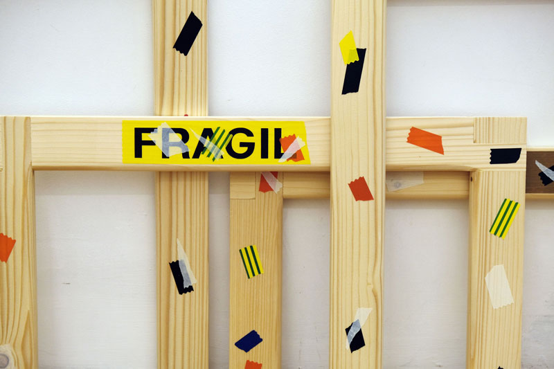 AS: Talvez tenha que escolher as duas coisas, até porque isto é um processo. E como processo que é, e como vou trabalhando ao mesmo tempo noutras séries, tento manter o mesmo rigor, mas sem o recurso à fita cola. Repara que aqui é quase uma conversa que acontece comigo mesmo: porque não usar a fita cola para ajudar a construir a própria fita cola. Às vezes criam-se situações caricatas, porque como a escala é de 1:1, e a fita cola é pintada com a cor aproximada, acontece-me ficar na dúvida entre qual é a verdadeira e qual é a falsa (risos).