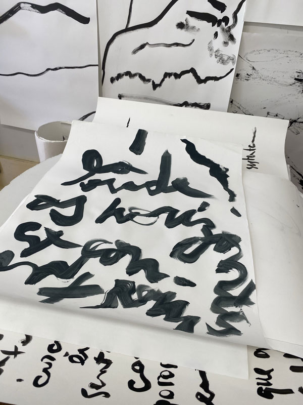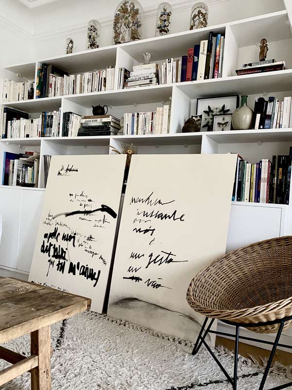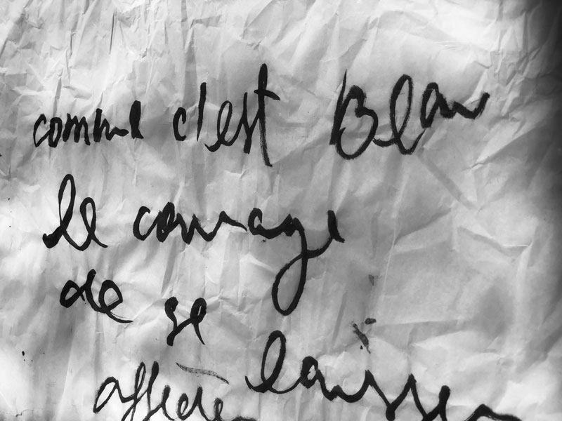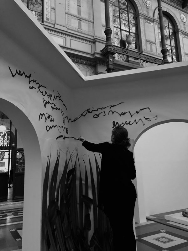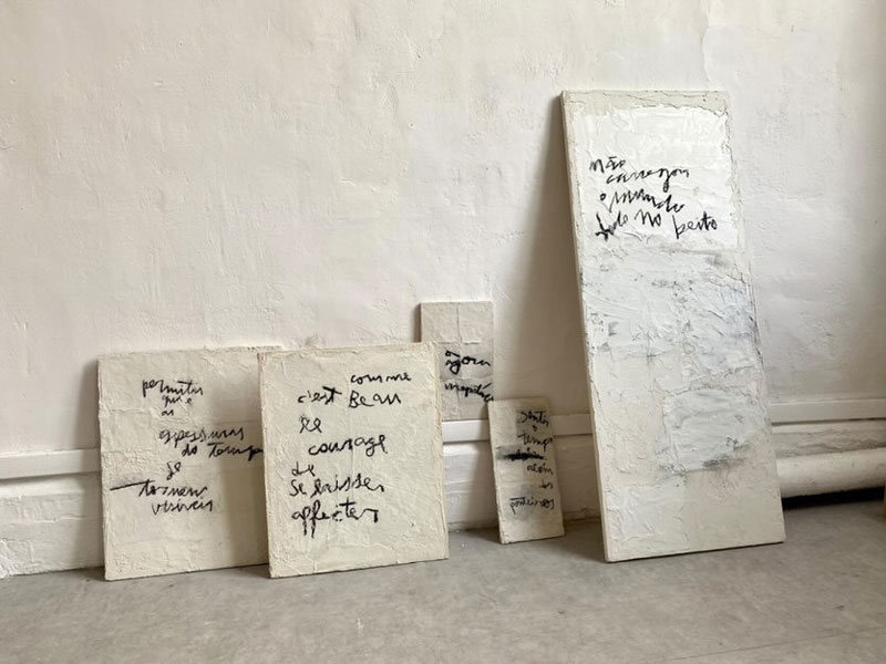 BV: Estou finalizando meu Master em Artes Plásticas numa colaboração entre a Universidade do Porto e a Escola de Paris, onde venho produzindo nos Ateliês dos Professores Claude Closky e Guillaume Paris, além da orientação da Prof. Filipa Cruz e Prof. Francisco Laranjo. Neste momento, busco compreender como trabalhar com a escala sem perder o caráter íntimo e sensível da escrita, e como minha obra se incorpora em diferentes espaços, existindo num formato de instalações, e interagindo também com o ambiente que a recebe. Isso implica uma investigação também sobre a própria língua francesa, como traduzir e representar esta vivência em Paris nos meus escritos. Tenho algumas exposições planejadas para este ano, nas próprias Galerias da École des Beaux-Arts e também em outros espaços culturais em Paris, além de uma participação na Biennale Culturelle d’Aix-en-Provence no verão. Para o futuro próximo, pretendo produzir e publicar minhas poesias num formato de livro de artista, onde as obras possam ser vistas e lidas, nas diversas linguagens e representações possíveis.