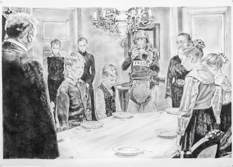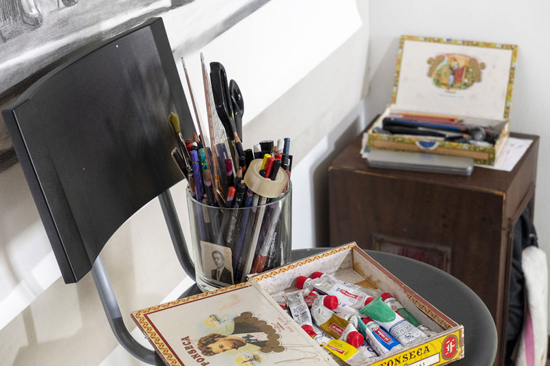 CP: A grafite é uma matéria muito plástica. Tem várias durezas. Posso riscar ou fazer manchas mais homogéneas. Às vezes, o carvão também entra para conseguir algumas nuances. Mas o grafite tem-me dado muito prazer trabalhar. Porquê desenho e grafite? Simplesmente, porque gosto. Caso gostasse mais de recortar fotografias, optaria por usar antes essa técnica.