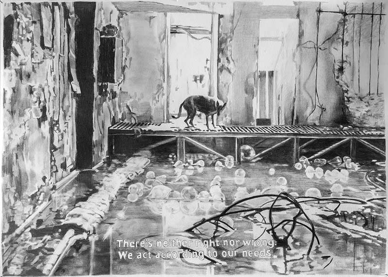 FLC: O desenho é talvez o mais antigo método de registo do real e das ideias que surgem da ficção. É também o processo criativo com que mais te identificas. Que relação pretendes estabelecer entre o desenho e o mundo, seja ficcional ou documental?