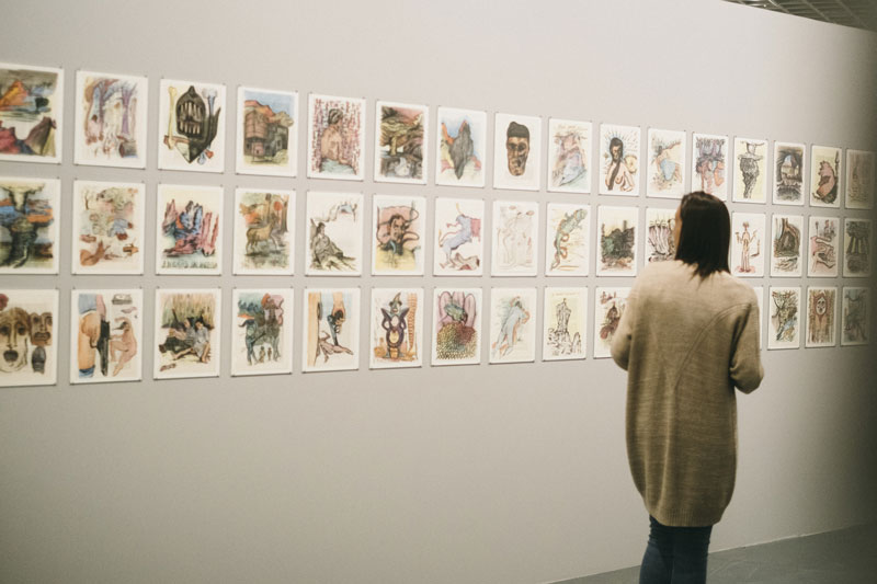 MD: Percebo que o título pareça paradoxal tendo em conta a quantidade de obras que estão expostas. Talvez seja um convite lançado ao espectador para que se lembre que, apesar da quantidade e das similaridades que alguns desenhos têm entre eles, nunca deixam de ser absolutamente idiossincráticos. Leibniz afirma que em cada acontecimento, em cada gesto de alguém algures, existem em potência todos os acontecimentos e gestos do passado, presente e futuro. Gosto dessa ideia abissal. Há também o facto, estranho e incompreensível, de se sonhar todas as noites. Segundo alguns especialistas, o sonho é uma espécie de reset que nos permite, a cada noite, voltar a ser o que somos. Se não tivéssemos esse momento noturno, este reiniciar, uma pulsão imitativa levar-nos-ia a ficar todos iguais. Sem sonho não existe hápax.
