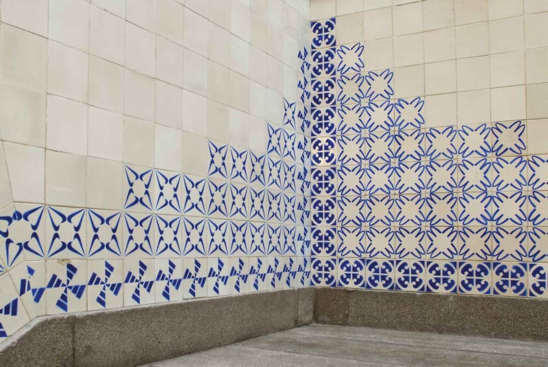 Vista: Horror vacui, 2007, exposição colectiva - Pack - Reitoria da universidade do porto, spray esmalte acrílica sobre azulejo.