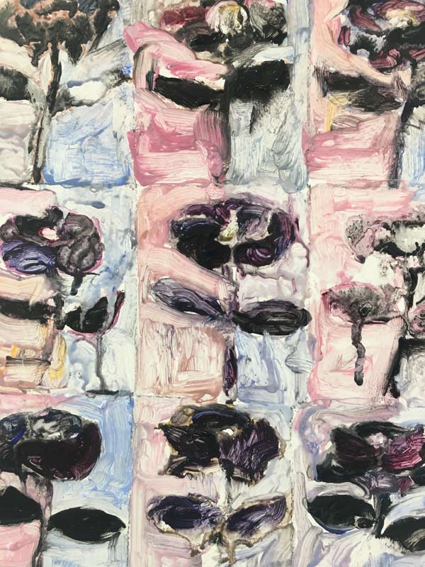 RB: E são. Desde que comecei a pensar a exposição, e já que as pinturas se interligam por uma ideia de interrupção, achei que devia ter um elemento que a activasse. Que interrompesse a leitura das pinturas no contexto da exposição. Estava a fazer esse motivo das flores nalgumas pinturas, apareciam sempre como acessórios, quando eu acho que funcionam super bem isolados.
